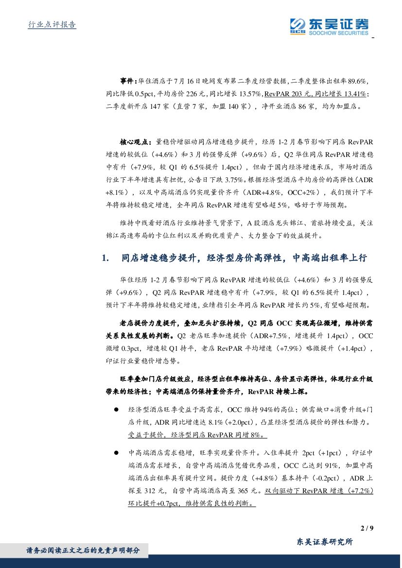 东吴证券:酒店行业:华住Q2经营数据符合预期,行业景气持续.pdf