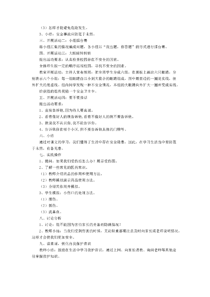 2021一年级上册 人教版小学道德与法治《11 别伤着自己》教学设计1.doc