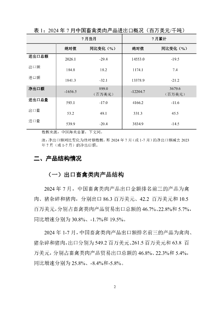 对外经济贸易大学:中国畜禽类肉产品贸易月度监测报告(2024年1-7月).pdf