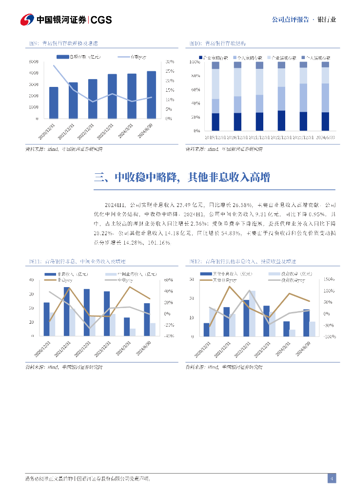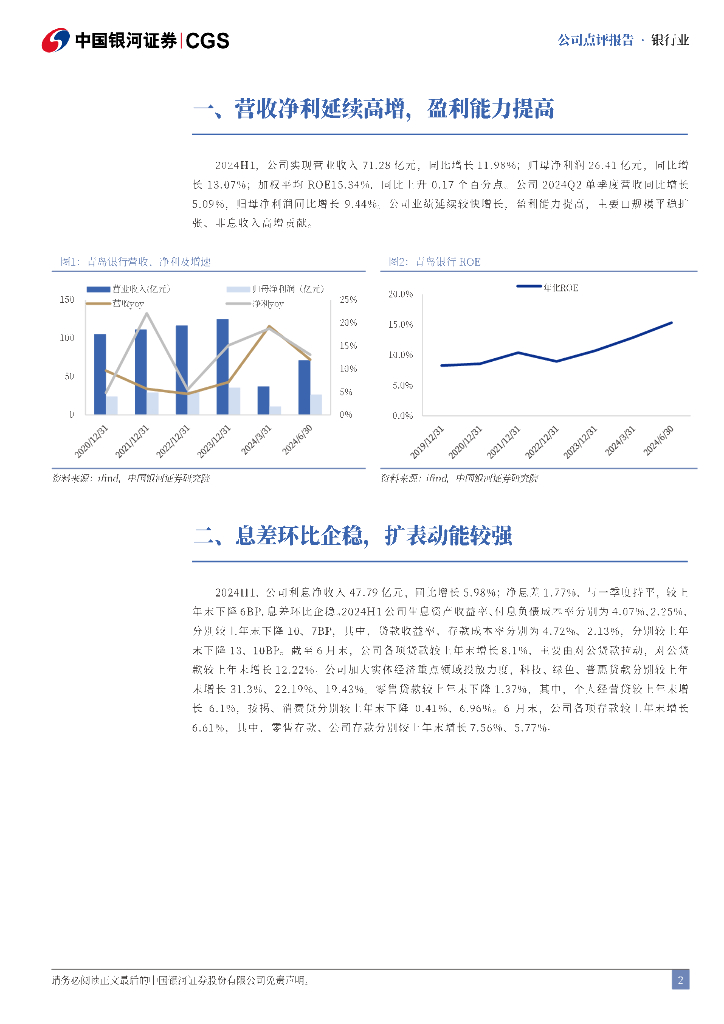 中国银河:青岛银行2024年半年度报告业绩点评:营收净利亮眼,息差环比企稳.pdf