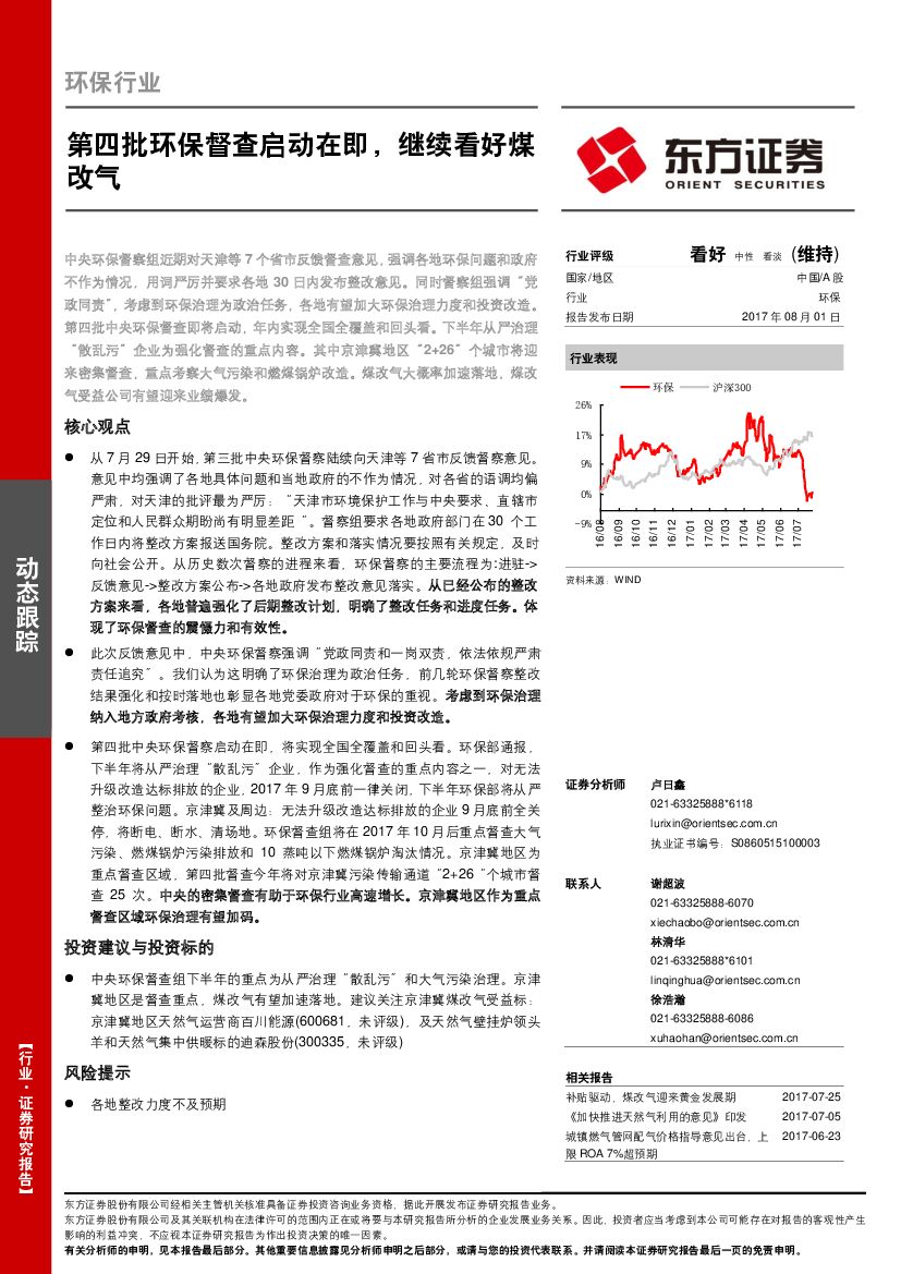 东方证券:环保行业:第四批环保督查启动在即,继续看好煤改气.pdf