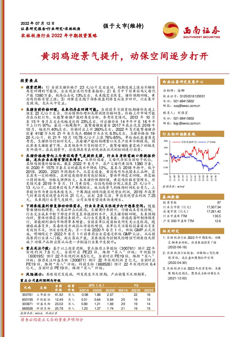 西南证券:农林牧渔行业2022年中期投资策略:黄羽鸡迎景气提升,动保空间逐步打开.pdf