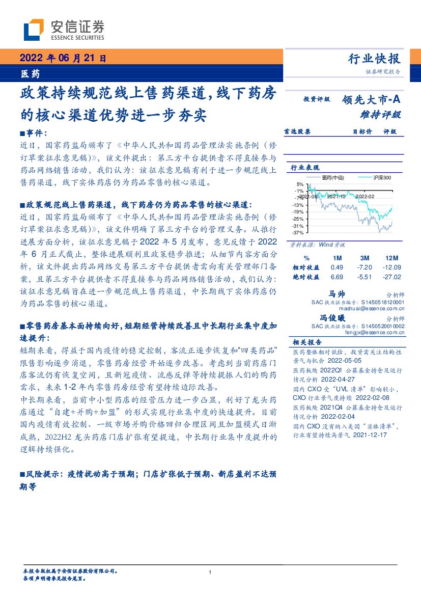 安信证券:医药:政策持续规范线上售药渠道,线下药房的核心渠道优势进一步夯实.pdf