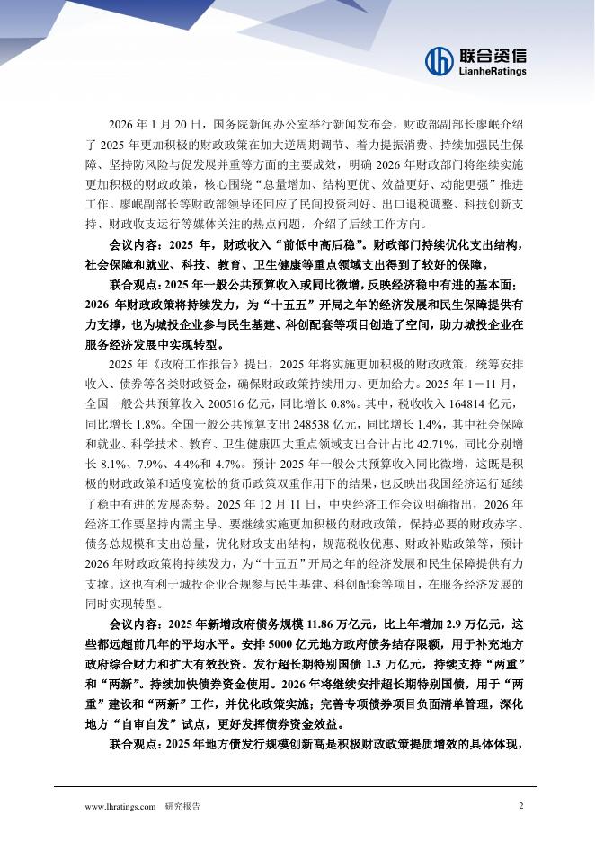 联合资信:2026年积极的财政政策持续发力,护航“十五五”及城投转型报告.pdf