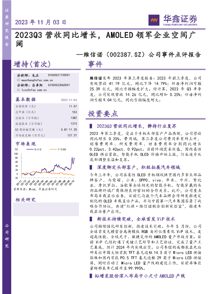 华鑫证券:维信诺(002387)-公司事件点评报告:2023Q3营收同比增长,AMOLED领军企业空间广阔.pdf