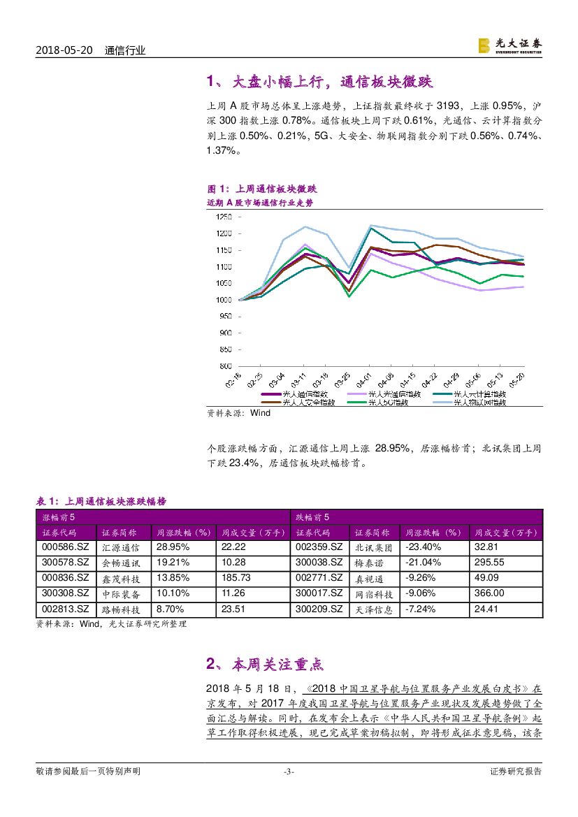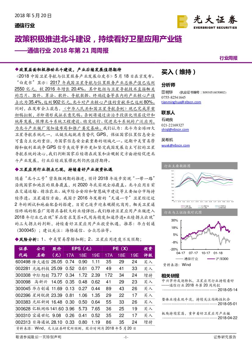 光大证券:通信行业2018年第21周周报:政策积极推进北斗建设,持续看好卫星应用产业链.pdf
