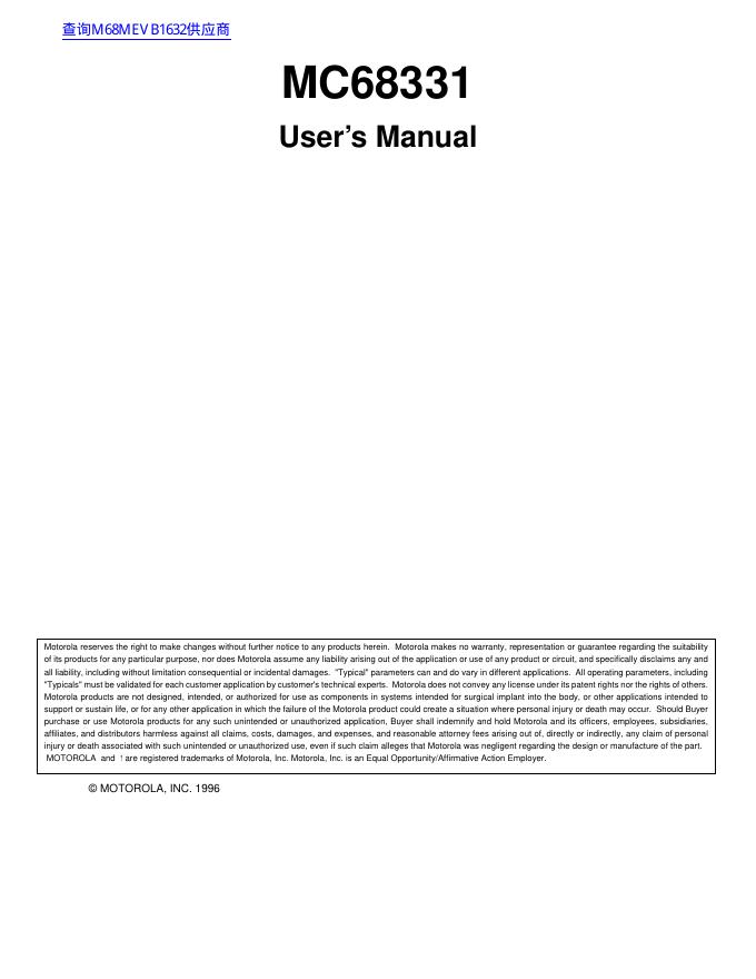 MOTOROLA MC68331 用户手册.pdf