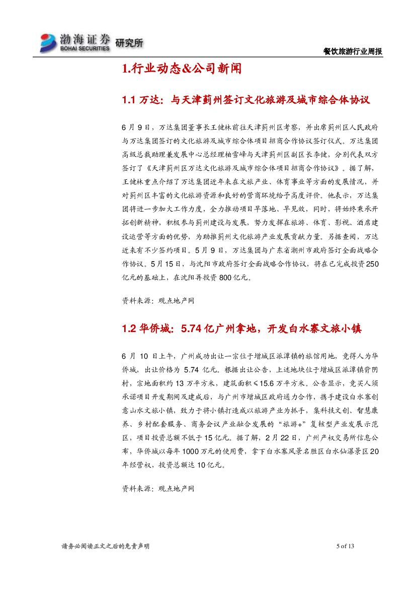 渤海证券:餐饮旅游行业周报:端午假期共接待9598万游客 中免设大兴机场免税公司.pdf