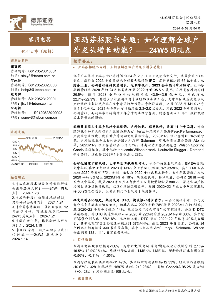 德邦证券:家用电器行业24W5周观点:亚玛芬招股书专题,如何理解全球户外龙头增长动能?.pdf
