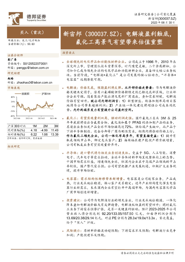 德邦证券:新宙邦(300037)-电解液盈利触底,氟化工高景气有望带来估值重塑.pdf