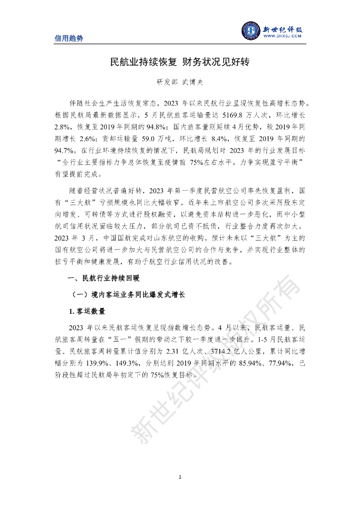 新世纪评级:民航业持续恢复 财务状况见好转.pdf