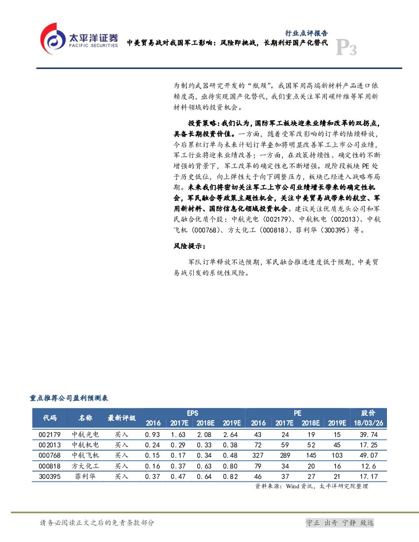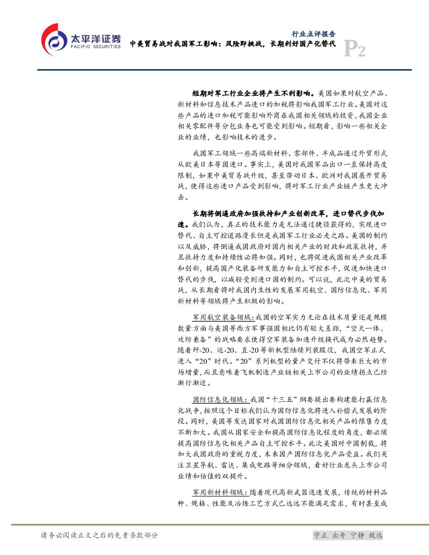 太平洋证券:国防军工:中美贸易战对我国军工影响:风险即挑战,长期利好国产化替代.pdf