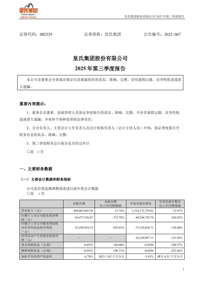 002329-皇氏集团:2025年三季度报告.pdf