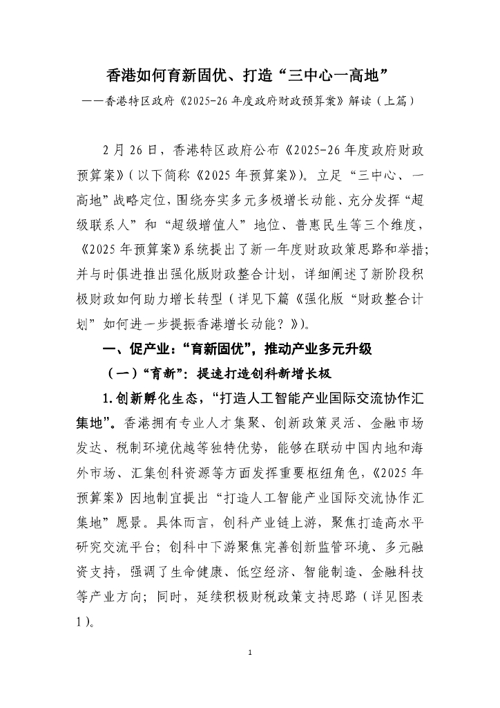 工银亚洲:香港如何育新固优、打造“三中心一高地”- 香港特区政府《2025-26年度政府财政预算案》解读报告(上篇).pdf