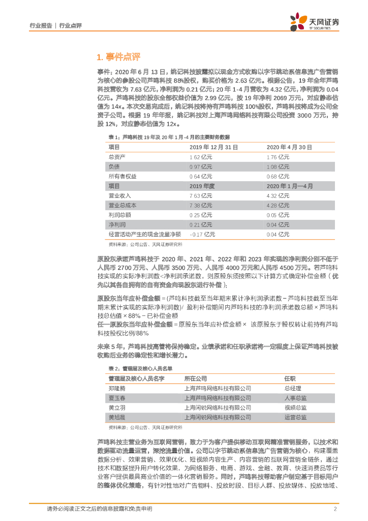 天风证券:文化传媒:姚记科技点评:收购字节跳动买量公司芦鸣科技剩余88%股权,围绕头条打造高成长产业链闭环.pdf