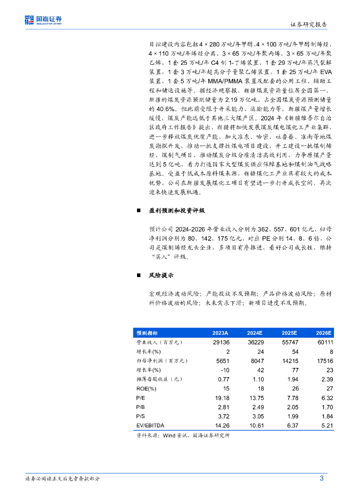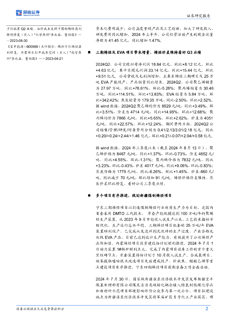 国海证券:宝丰能源(600989)-2024年中报点评:烯烃量利双增,规划新疆煤制烯烃项目.pdf