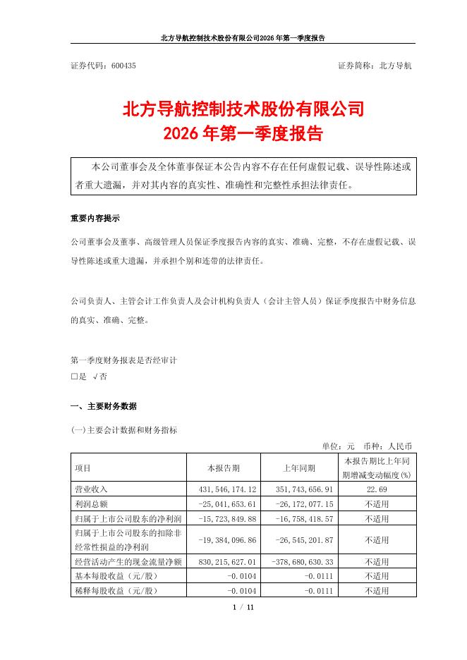 600435-北方导航:北方导航2026年第一季度报告.pdf