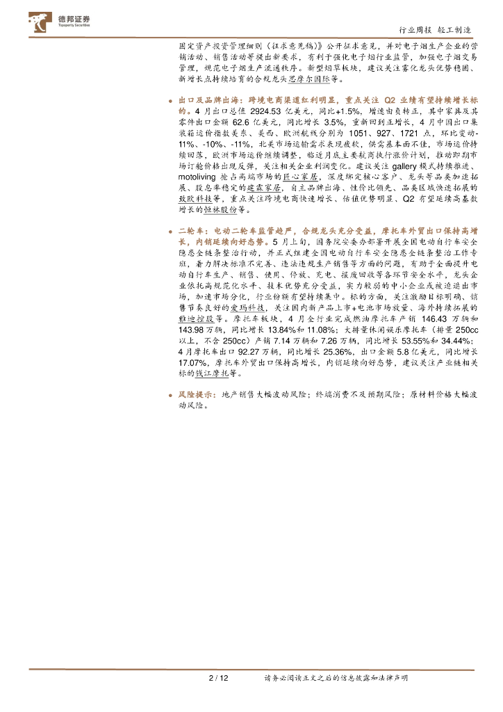 德邦证券:轻工制造行业周观点:地产政策多箭齐发,家居估值修复仍未结束,摩托出口增速亮眼.pdf