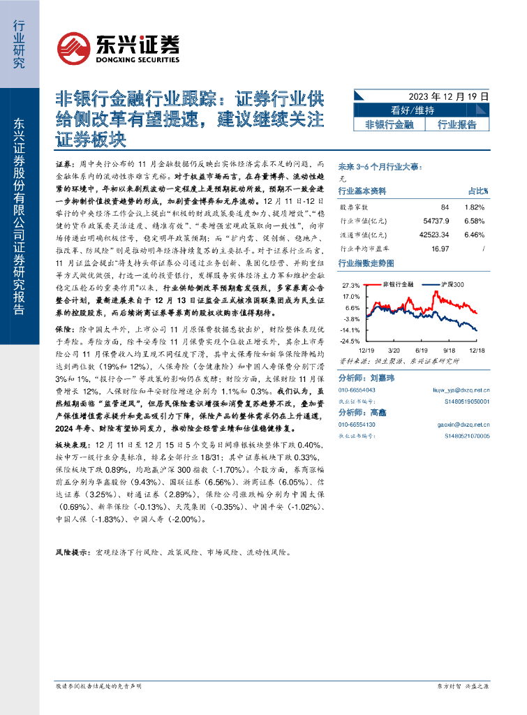 东兴证券:非银行金融行业跟踪:证券行业供给侧改革有望提速,建议继续关注证券板块.pdf