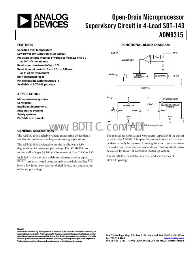ANALOG DEVICES ADM6315 数据手册.pdf