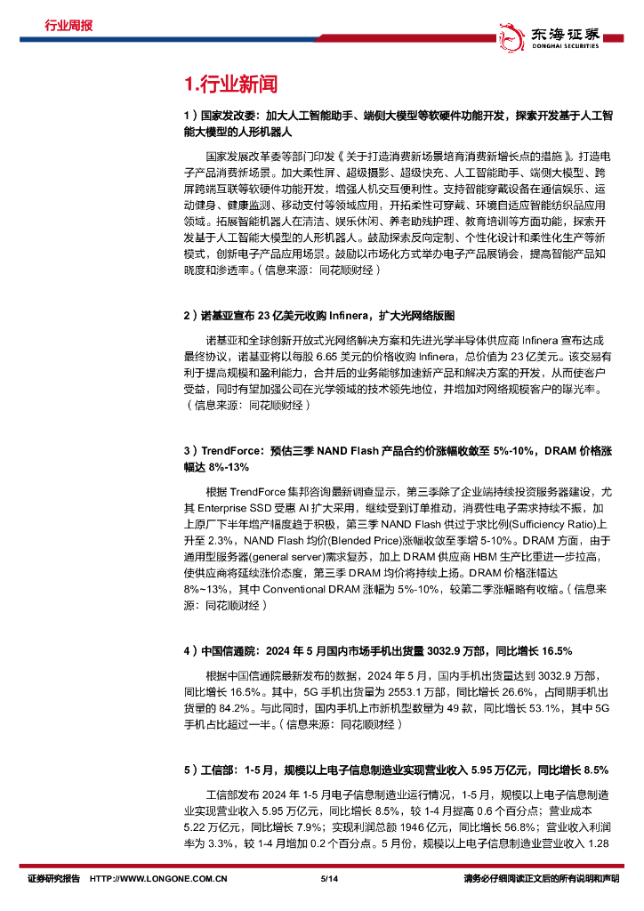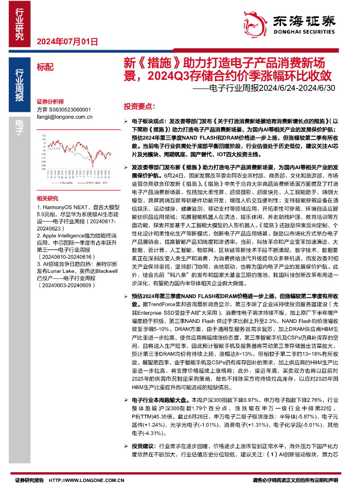 东海证券:电子行业周报:新《措施》助力打造电子产品消费新场景,2024Q3存储合约价季涨幅环比收敛.pdf