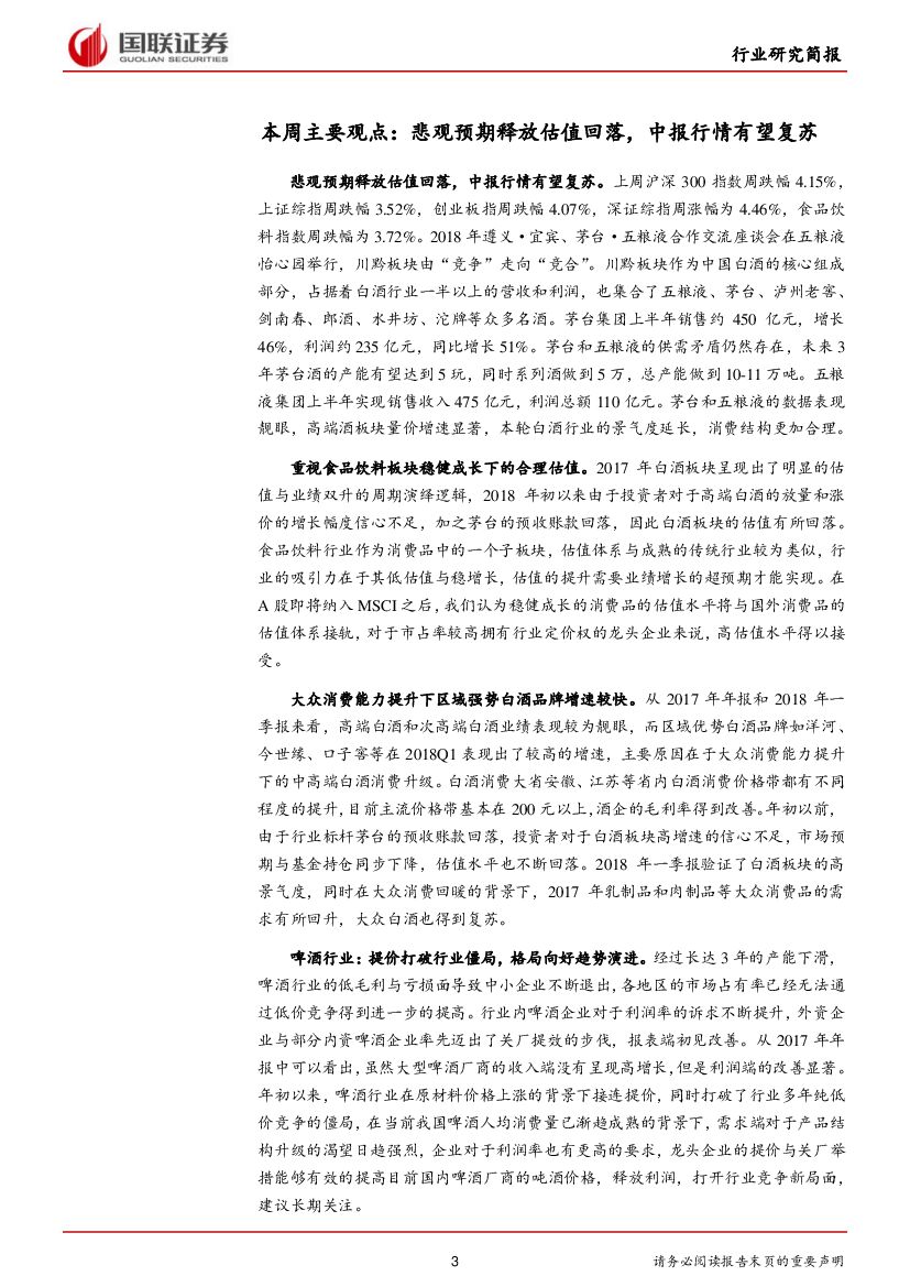 国联证券:食品饮料行业2018年第26期:悲观预期释放估值回落,中报行情有望复苏.pdf