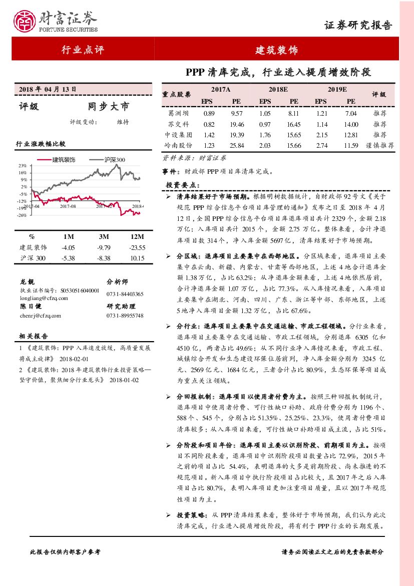 财富证券:建筑装饰行业点评:PPP清库完成,行业进入提质增效阶段.pdf