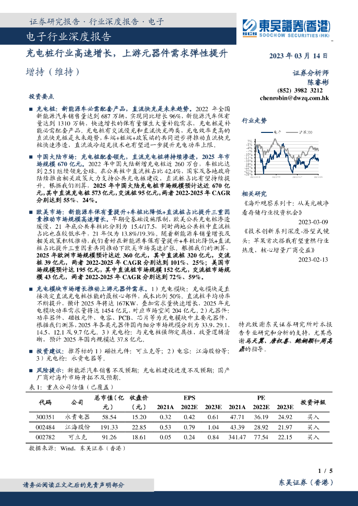 东吴证券国际经纪:电子行业深度报告:充电桩行业高速增长,上游元器件需求弹性提升.pdf