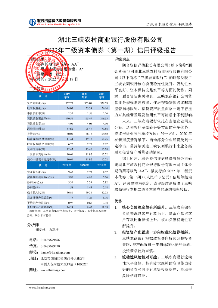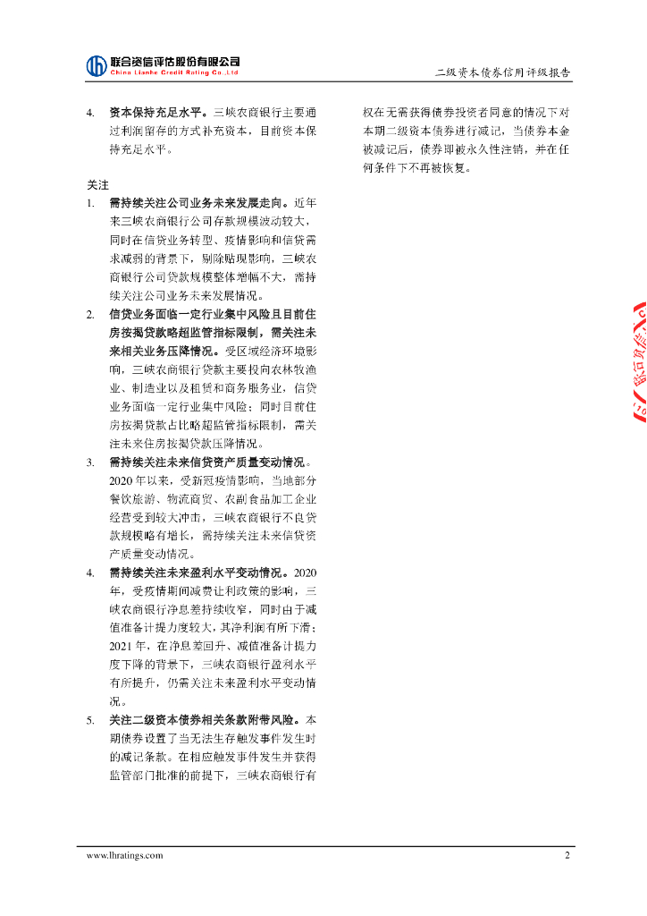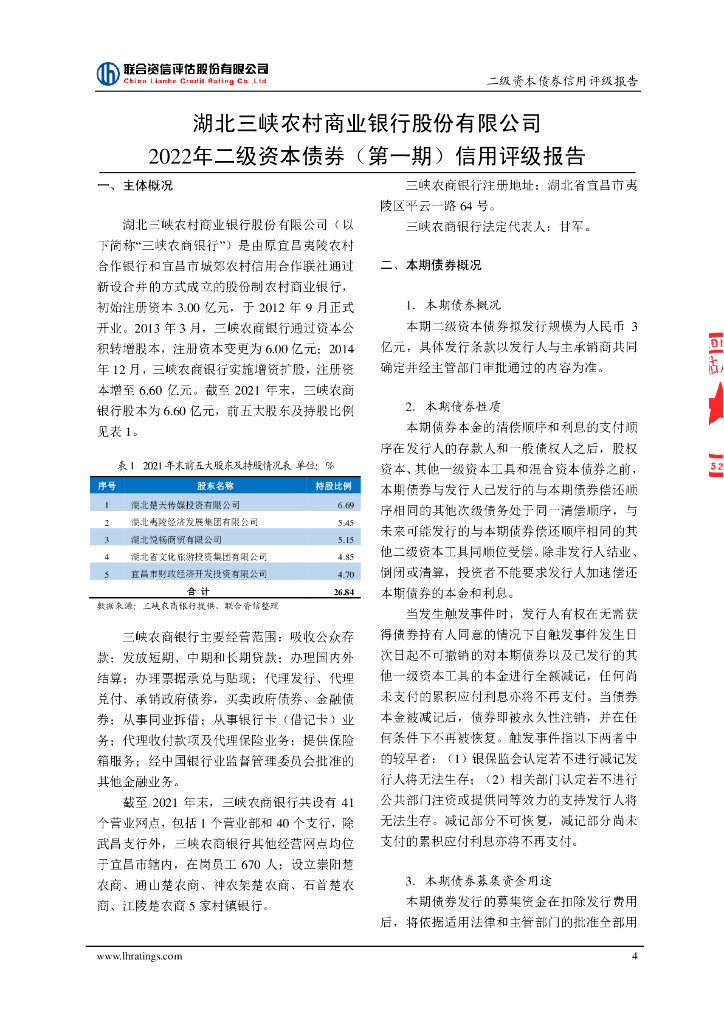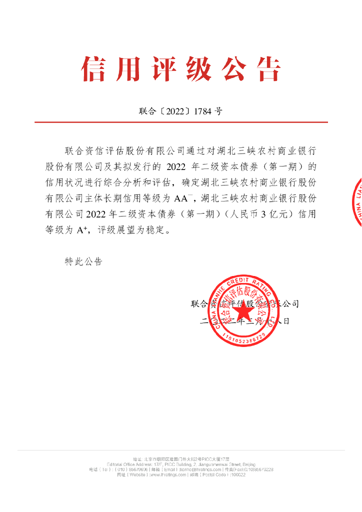 联合资信:湖北三峡农村商业银行股份有限公司2022年二级资本债券(第一期)信用评级报告及跟踪评级安排说明.pdf