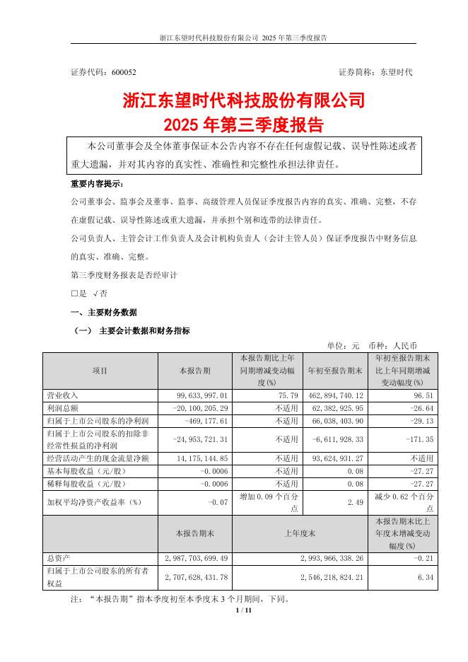 600052-东望时代:浙江东望时代科技股份有限公司2025年第三季度报告.pdf