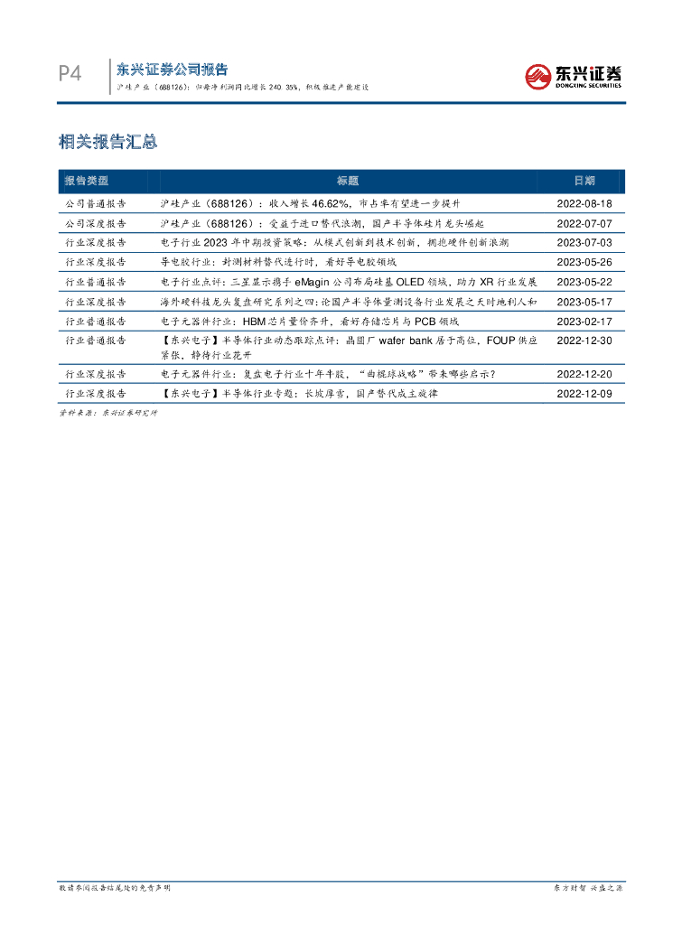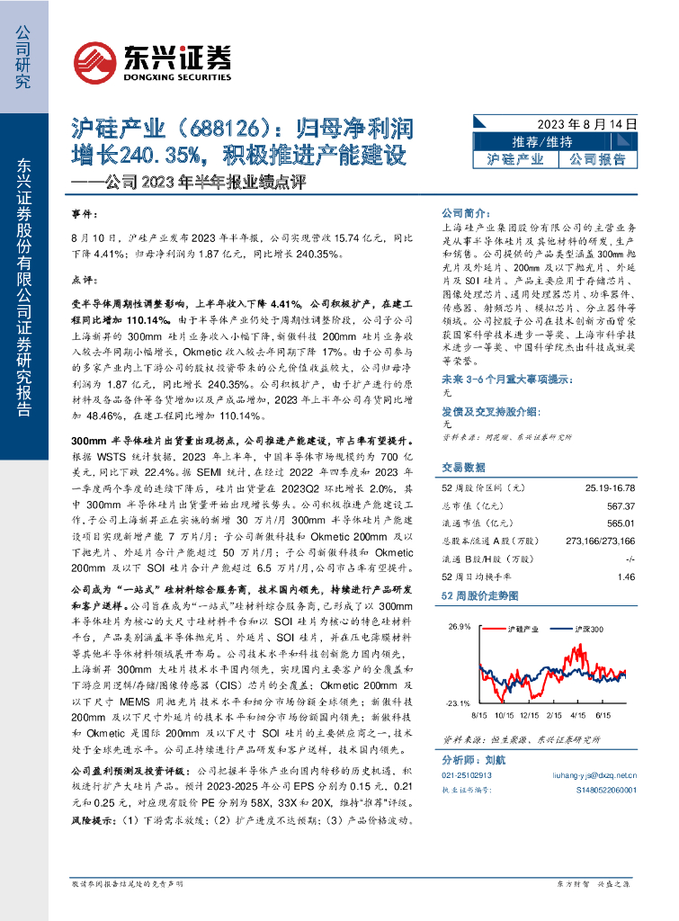 东兴证券:沪硅产业(688126)-公司2023年半年报业绩点评:归母净利润增长240.35%,积极推进产能建设.pdf