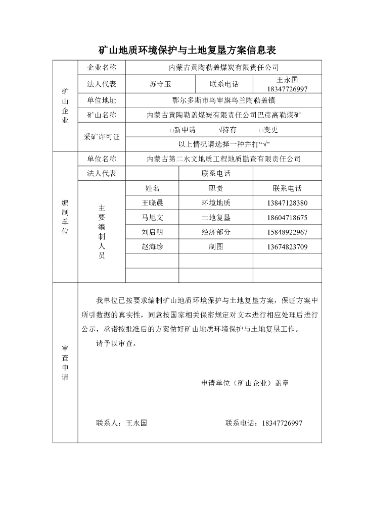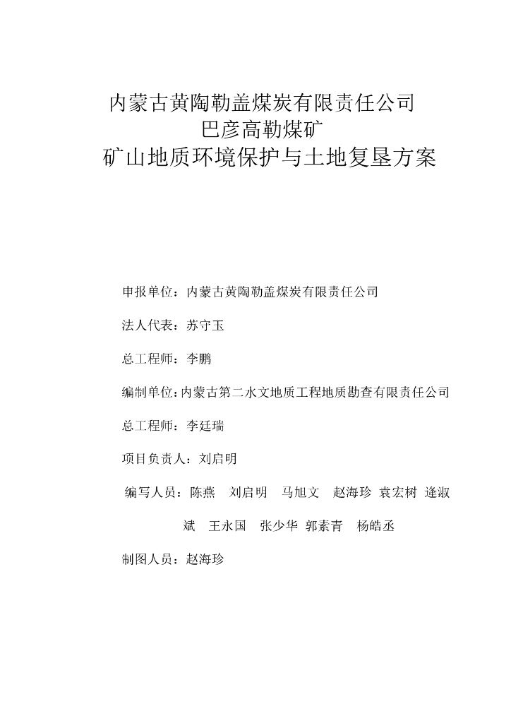 内蒙古黄陶勒盖煤炭有限责任公司 巴彦高勒煤矿-矿山地质环境保护与土地复垦方案.pdf