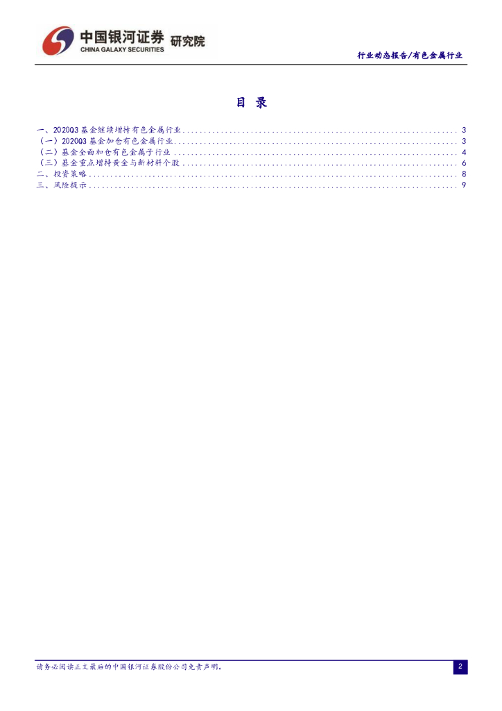 中国银河:有色金属行业2020Q3基金持仓分析:基金继续加仓有色金属行业,顺周期、新能源、新材料板块有望获得进一步增持.pdf