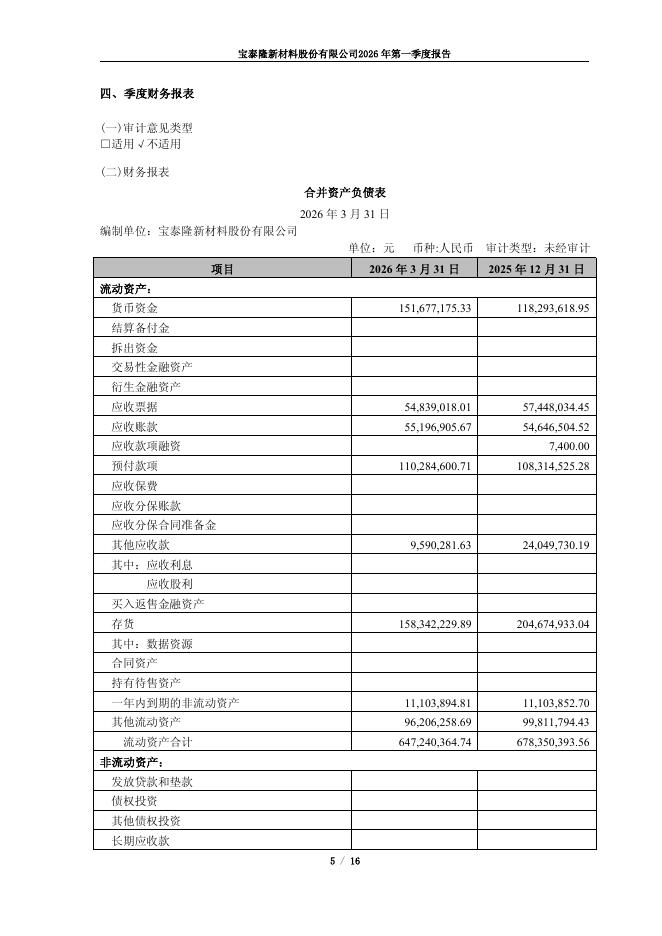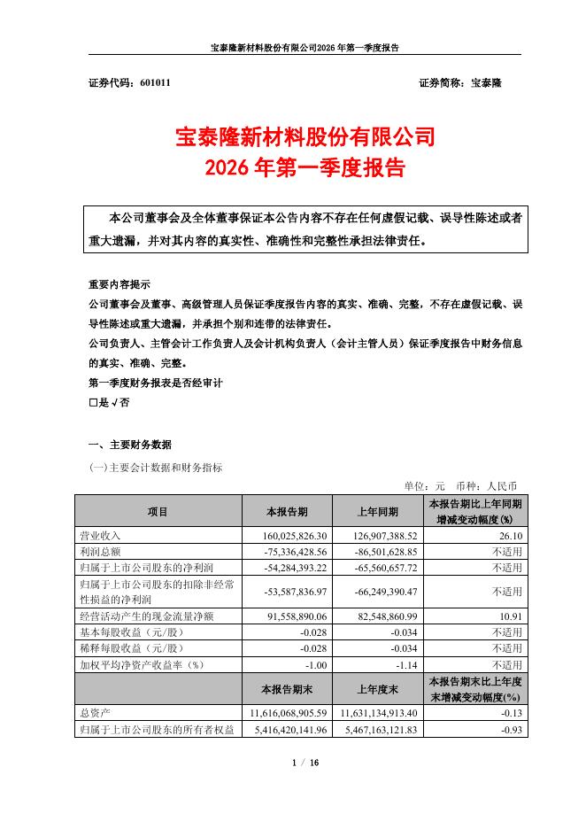 601011-宝泰隆:宝泰隆新材料股份有限公司2026年第一季度报告.pdf