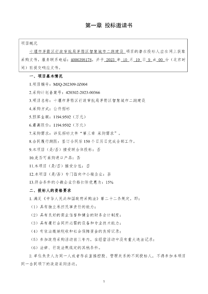 智慧城市-十堰市茅箭区智慧城市二期建设项目招标文件.pdf