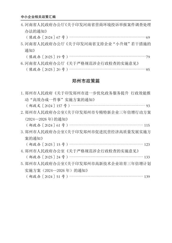 郑州市中小企业服务中心:中小企业相关政策汇编(2025).pdf