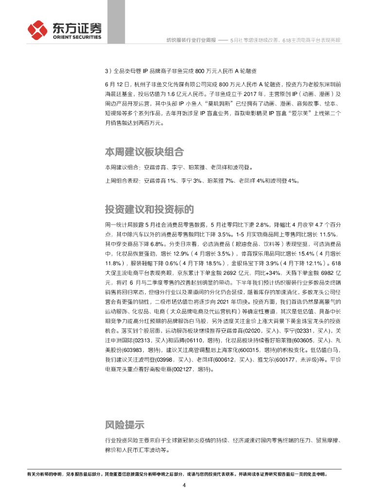 东方证券:纺织服装行业周报:5月社零增速继续改善,618主流电商平台表现亮眼.pdf