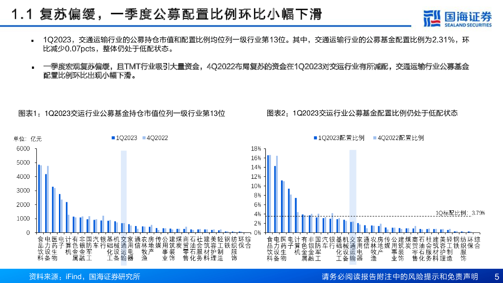国海证券:交通运输行业专题报告:行业配置比例小幅回调,机构加仓航空航运——1Q2023交运机构持仓分析.pdf
