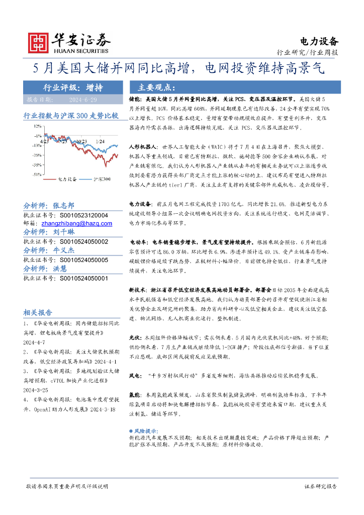 华安证券:电力设备行业周报:5月美国大储并网同比高增,电网投资维持高景气.pdf