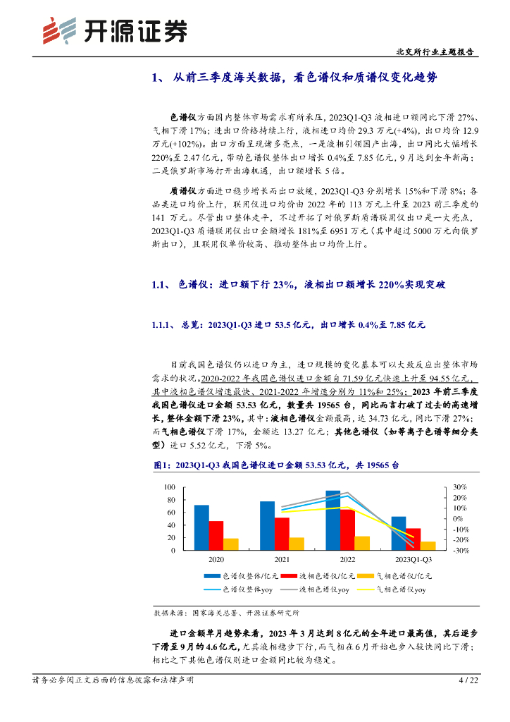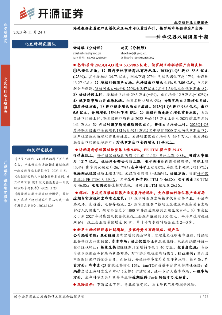 开源证券:科学仪器双周谈第十期:海关数据来看进口色谱仪承压而质谱仪量价齐升,俄罗斯市场驱动国产出海.pdf