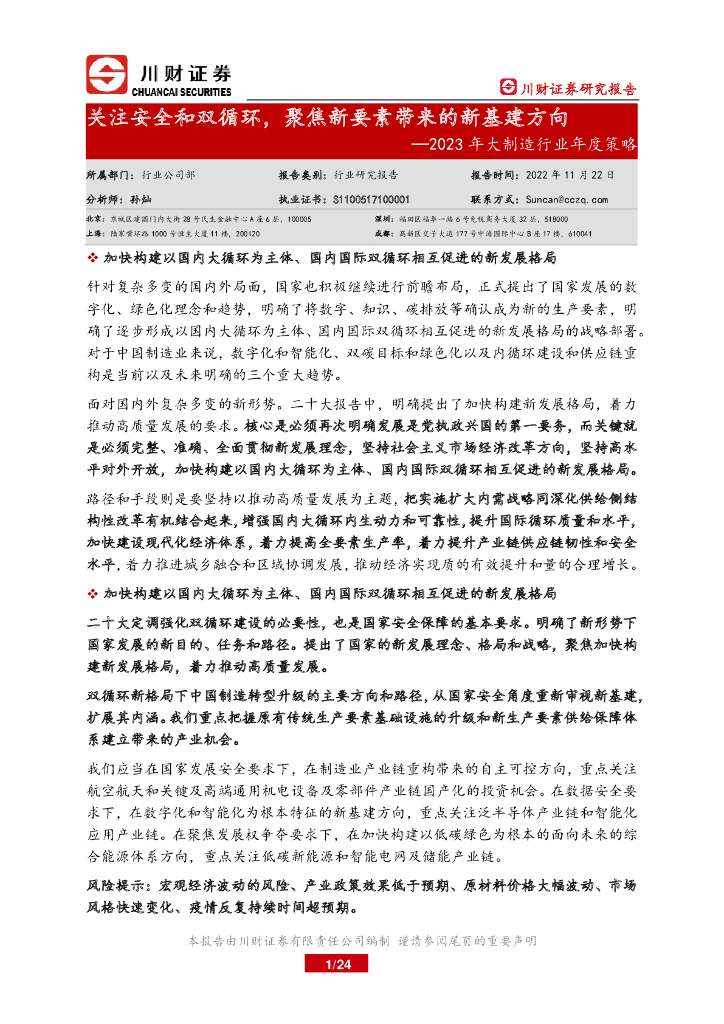 川财证券:2023年大制造行业年度策略:关注安全和双循环,聚焦新要素带来的新基建方向.pdf