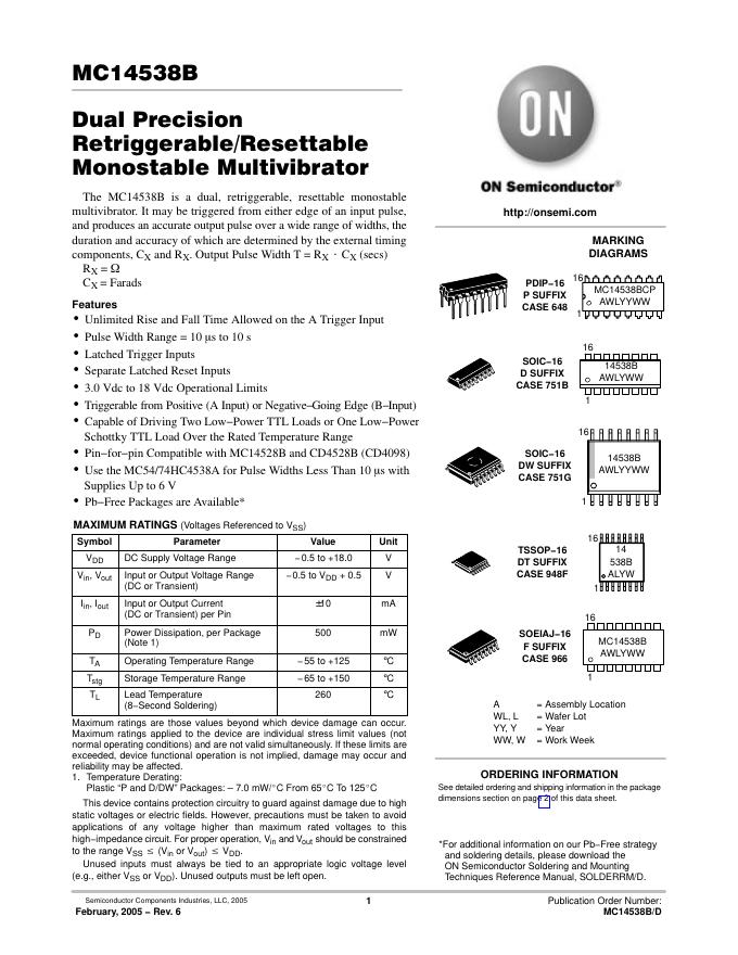 ON SEMICONDUCTOR MC14538B 数据手册.pdf