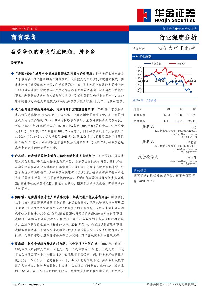 华金证券:商贸零售:备受争议的电商行业鲶鱼:拼多多.pdf