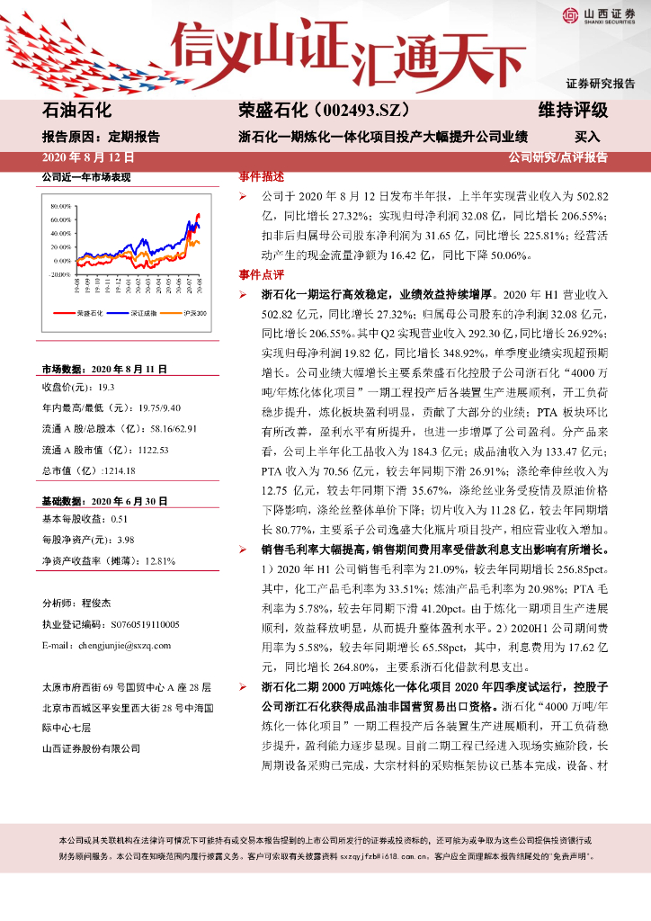 山西证券:荣盛石化(002493)-浙石化一期炼化一体化项目投产大幅提升公司业绩.pdf