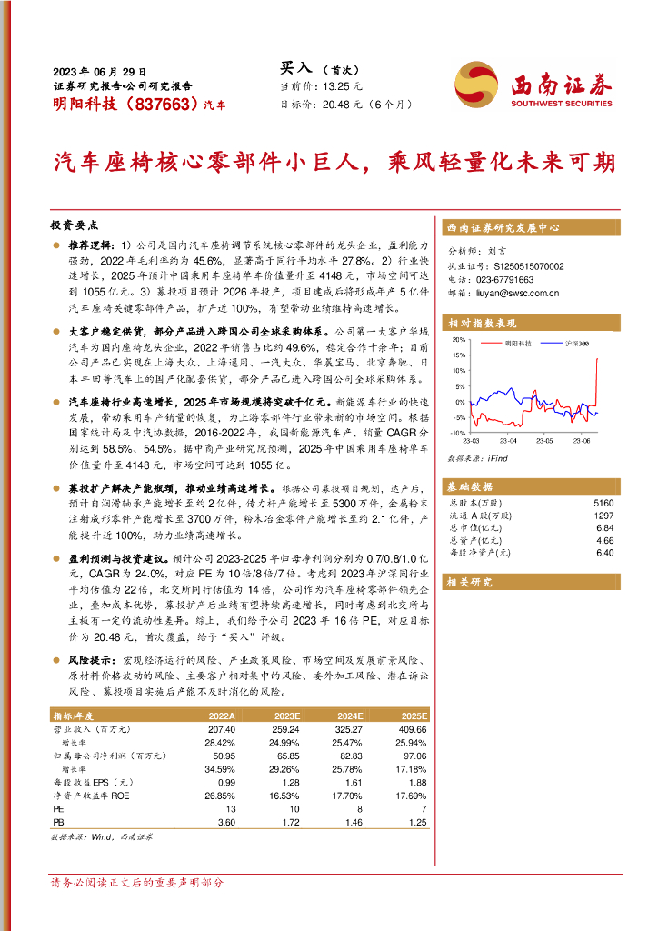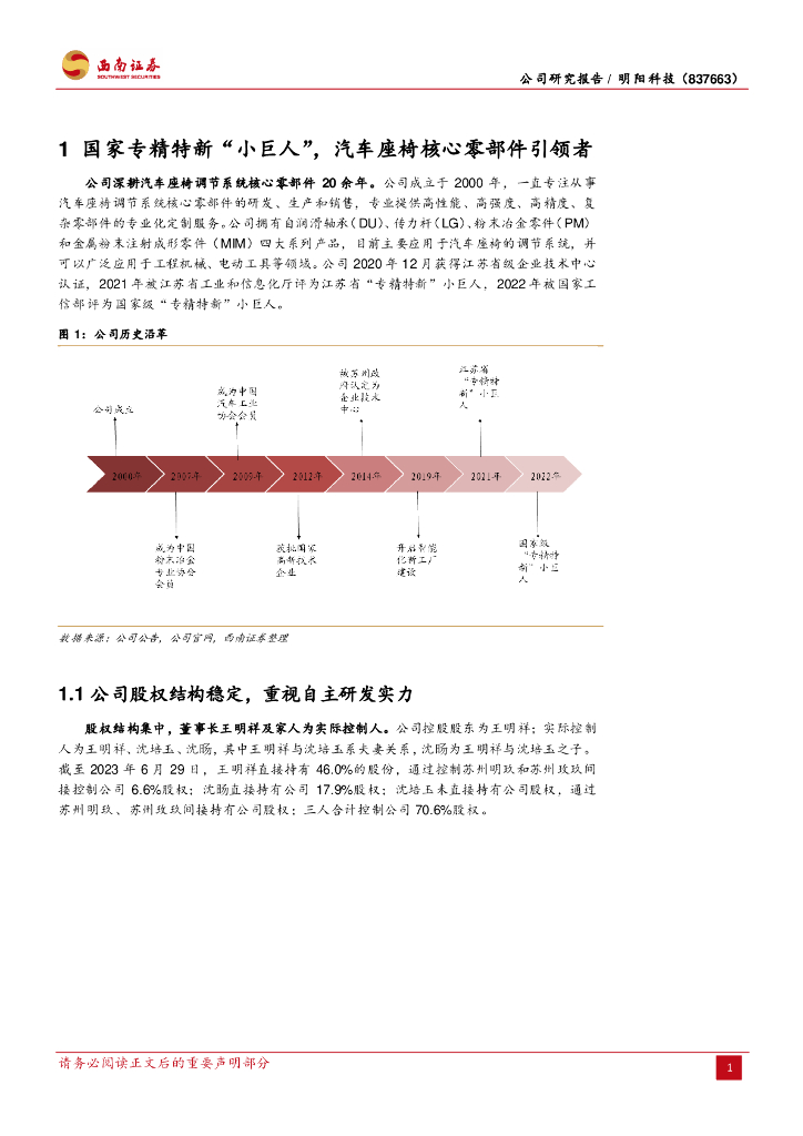 西南证券:明阳科技(837663)-汽车座椅核心零部件小巨人,乘风轻量化未来可期.pdf