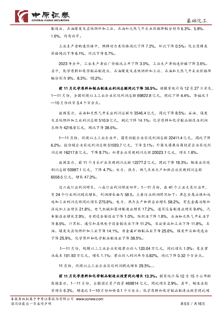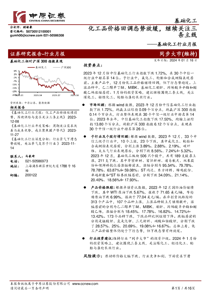 中原证券:基础化工行业月报:化工品价格回调态势放缓,继续关注三条主线.pdf