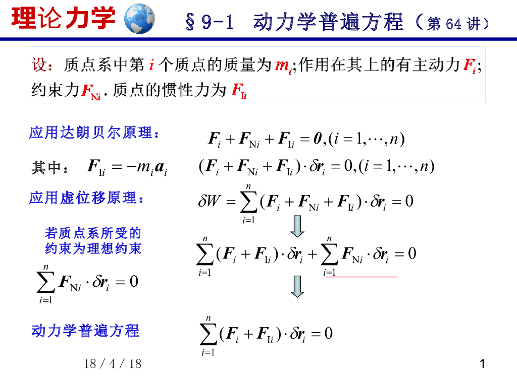 《理论力学》演示文稿-动力学普遍方程(2).pdf