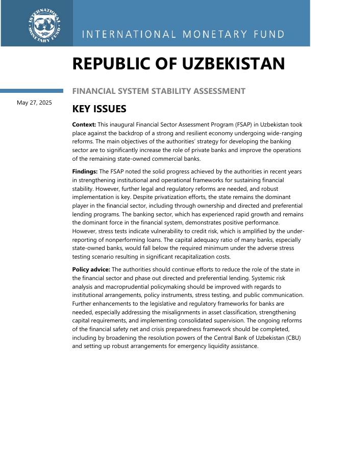 国际货币基金组织:2025年乌兹别克斯坦共和国:金融部门评估计划金融体系稳定性评估报告(英文版).pdf