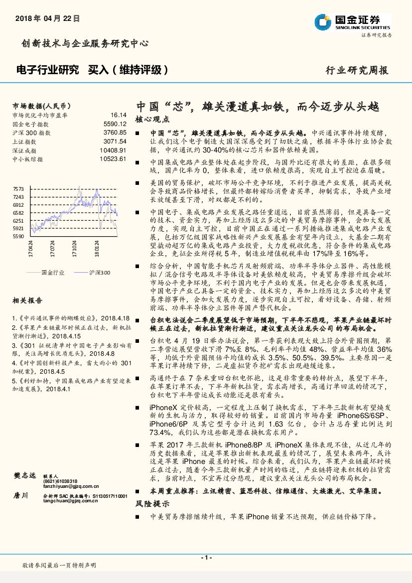 国金证券:电子行业研究周报:中国“芯”,雄关漫道真如铁,而今迈步从头越.pdf