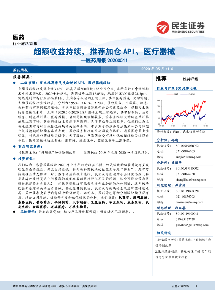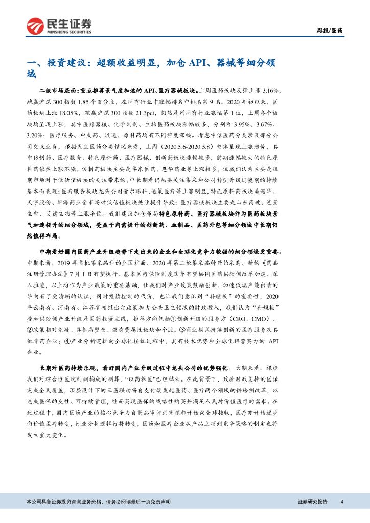 民生证券:医药周报:超额收益持续,推荐加仓API、医疗器械.pdf